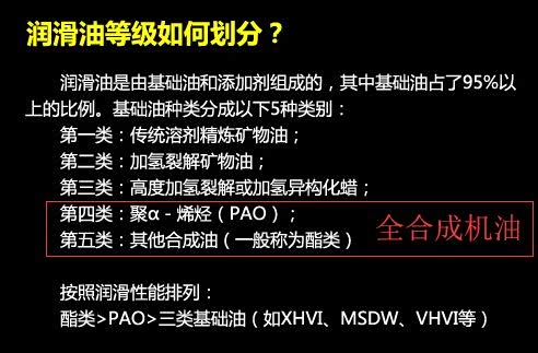 不过,简单理解的话,用四类和五类基础油调配的机油,并且不外加矿物油勾兑的都可以称之为全合成机油。