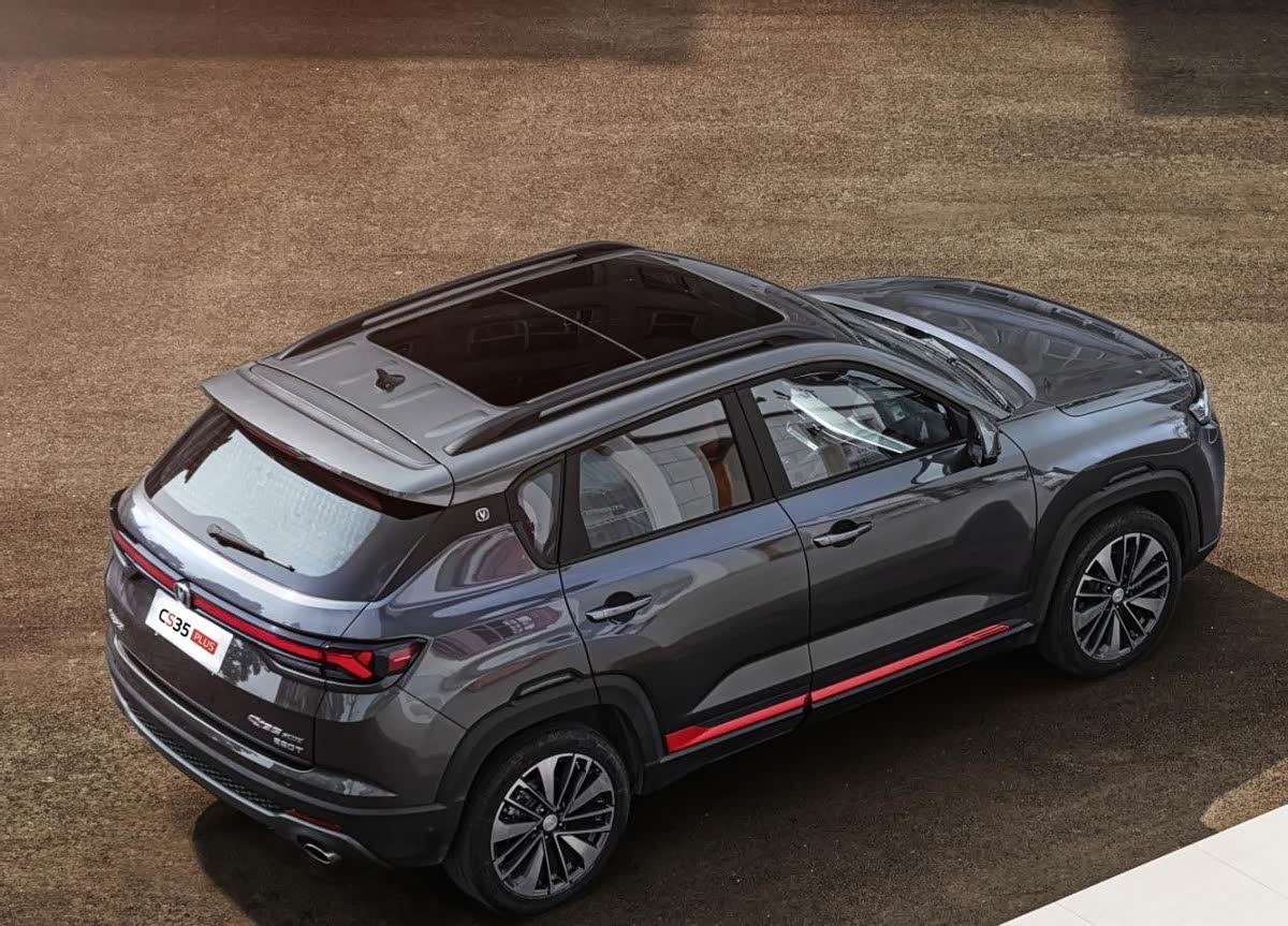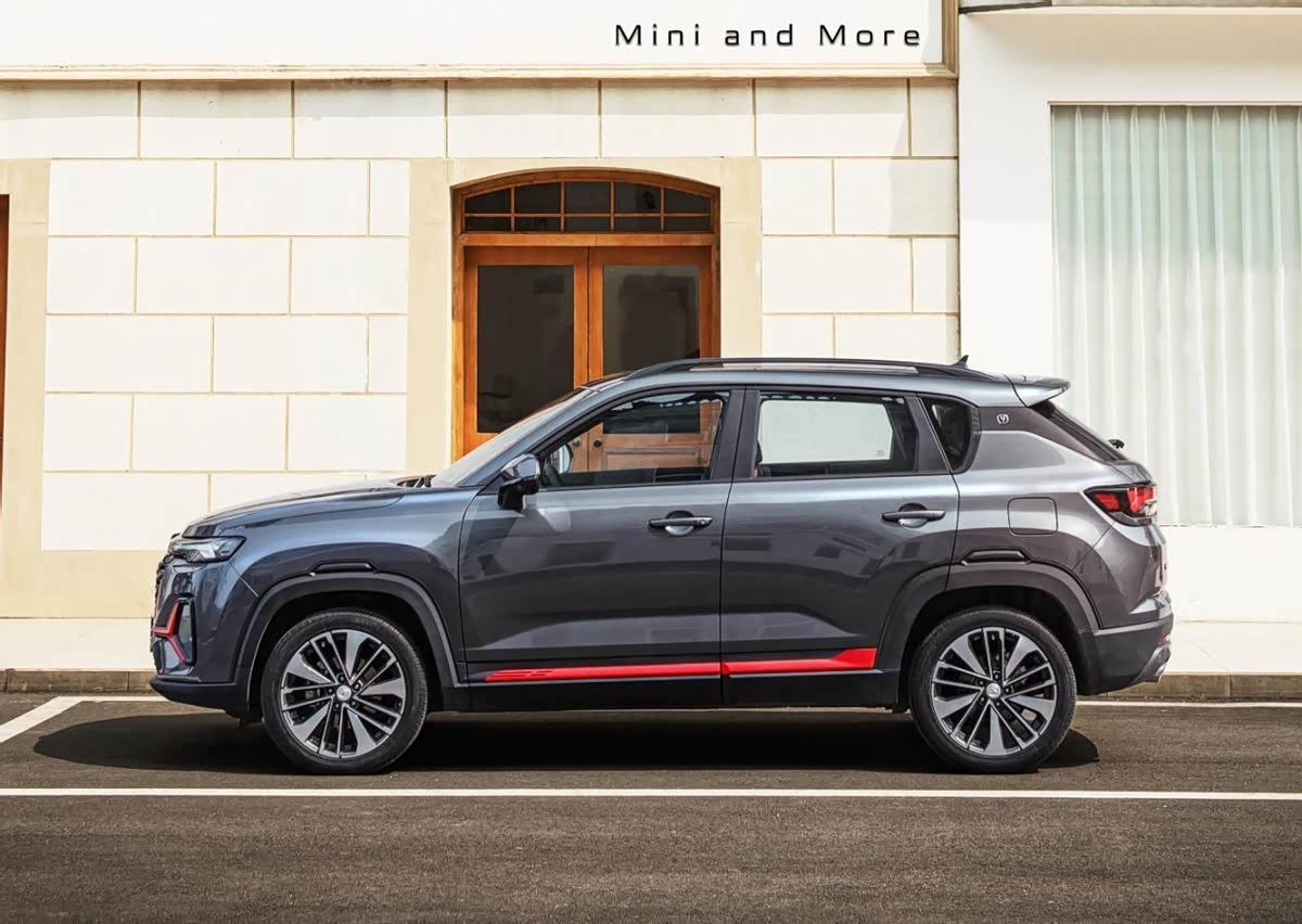 2022款长安逸动CS35PLUS长宽高分别为4330/1825/1660mm,轴距2600mm。新车的D柱设计比较有特色,黑色装饰件让车顶形成了悬浮式效果。前后轮拱造型外突,力量感十足。车门下方的红色装饰和车头呼应,一切都刚刚好。