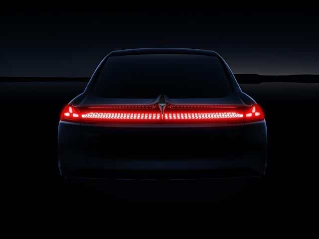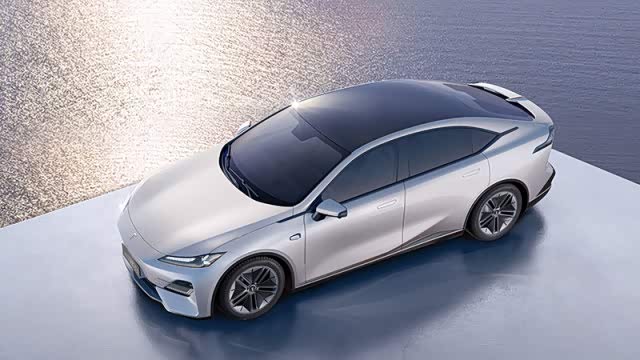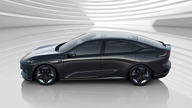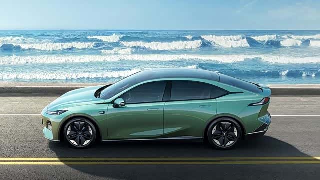 车身经空气动力学的整体优化,溜背式车身、隐藏式门把手、封闭式空气动力轮毂,风阻系数低至0.23Cd,达到领先水平。车尾的一体式尾灯会在风驰电掣中留下一抹迷人的红,而尾灯两侧是类似宇宙飞船喷气口的三组灯珠,车尾中间则是竖立的深蓝品牌三角车标。