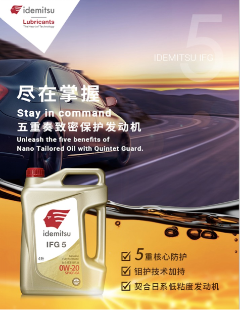 那么在日常使用时,那个品牌的润滑油好呢?我推荐大品牌的出光润滑油,其IFG5 0W-20、IFG5 5W-30产品以科学合理的配方设计,实现超越以往的API SP标准性能,卓越的抗氧化性能,不惧高温挑战!优秀的油泥控制力,让引擎洁净如新!非凡的抗磨损能力,直面严峻路况!出色的燃油经济性,让您乐享驾乘更轻松!
