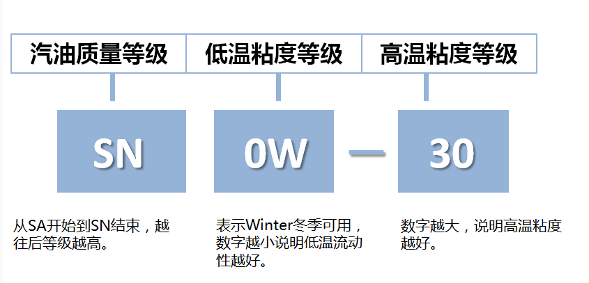 现在,我们再重新看上面举例的机油SN/GF-5 0W-20,SN表示汽油中最高等级的机油,GF-5表示燃油经济性好。但全合成机油相比于半合成机油,其使用期限更长,可以用较低的黏度就可以达到保护引擎的目的。