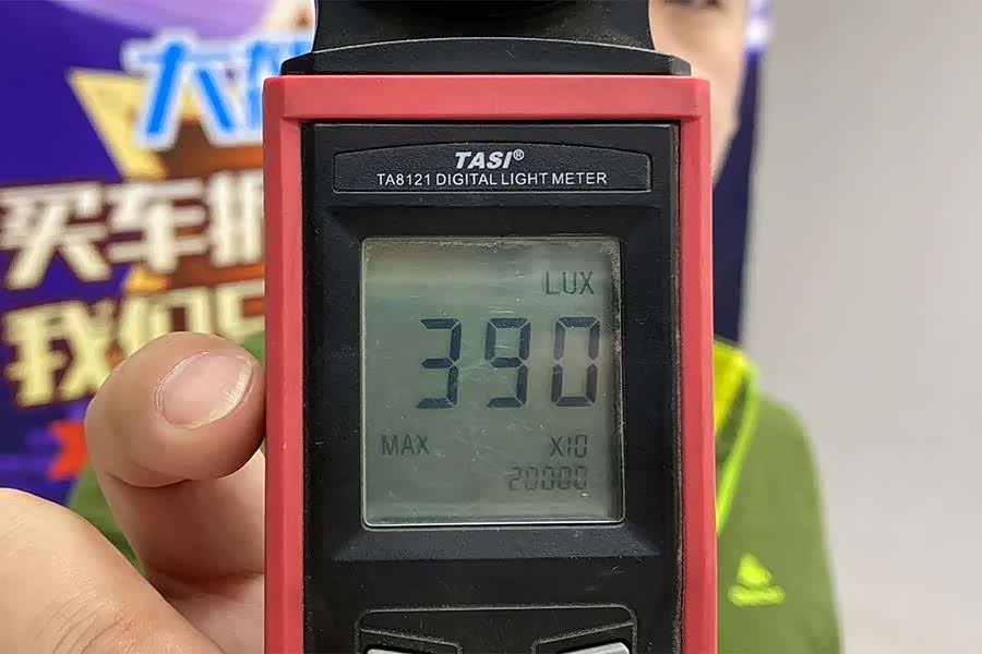 这辆车的大灯是LED光源,最大光照度为3900勒克斯,不算很亮。