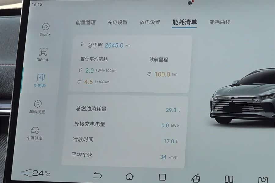 那么百公里3升油耗的数值是怎么来的呢?实际上当你点开“能耗清单”,就会发现确实有一个“4.6升/百公里”的显示。这个数值其实是发动机累计消耗汽油和车辆行驶总里程的比值,相当于把汽油机不工作时用电的行驶里程也加入到总里程中了。其中2.0千瓦时/百公里的电耗,也是同样的计算方法。 换句话说,如果一直都用充电桩充电,使用纯电行驶,不让发动机介入,时刻保持在60公里每小时以下,全部电动机驱动,那么理论上累计平均油耗可以做到“0”!所以,这就是一个让你开心的显示数值而已。