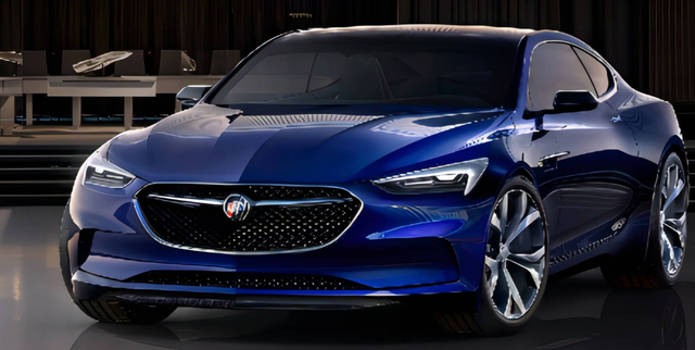 这台车叫AVISTA,定位双门超跑,可以看出,前脸还是延续别克家族的设计语言,只是中网采用黑色涂装的网格设计,飞翼式的logo得以保留,因此前脸的辨识度也是非常高的。灯组也是没啥变化,还是延续当下车型的设计,扁平化的包围以及轮毂的造型都能够营造出整车的运动质感,从车头看更像一台轿跑。