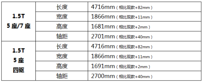 相对于外观设计的升级,更值得关注的是全新皓影车身尺寸的变化。