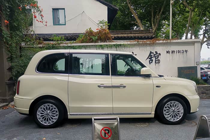车身侧面,新车前凸的车头在比例失衡方面暴露无遗,再加上后高前低的姿态使其看起来不仅笨拙老气,还有些怪异,这个设计跟海外LEVC TX电动车型相比有些败笔。侧面的亮点是沿用了劳斯莱斯风格的“对开门”设计,这也是从英国出租车延续下来的传统设计和经典记忆,跟传统MPV的侧滑式、平开式完全不同,估计是为照顾后排乘客上下车“绅士”般的仪态和从容。