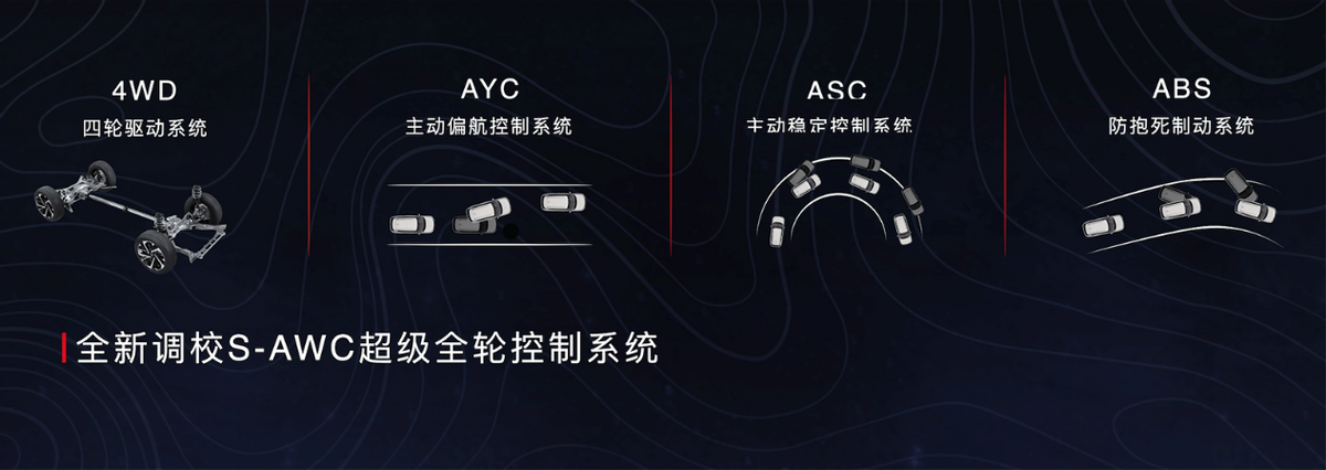 三菱全新一代1.5T 4B40引擎,新增48V轻混系统,最大功率提升至120kW,最大扭矩提升至280N·m。此外,其中四驱车型提供6种驾驶模式,两驱车型也有5种模式可选。