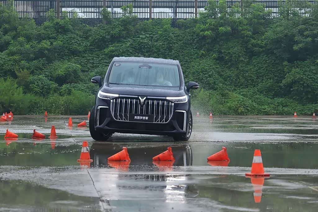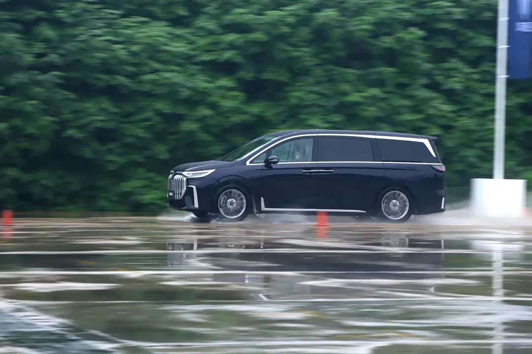 当然结果也是意料之中的,在强大硬件的加持下,梦想家在弯道中为我传递了更好的循迹性。相较之下它的侧倾更小,车头的指向性更为精准,且车身姿态始终处于可控的范围内。而当以50公里/小时时速通过高频的颠簸路面时,底盘又呈现出了柔和的一面,此时长行程与软阻尼将传递到车身的振动进行了充分过滤,体感舒适度值得肯定。最终的测试结果是,放置在车内水杯的液面高度要略高于竞品车型。