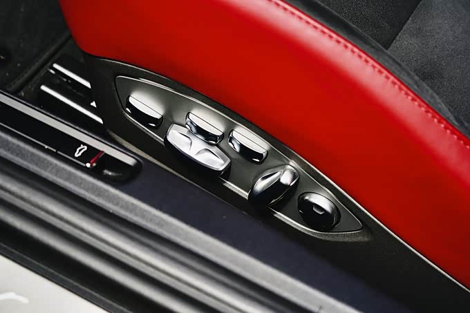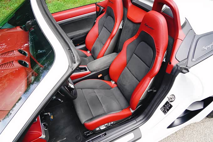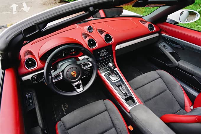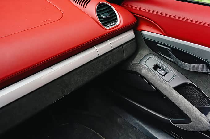 一体式运动座椅是718车型的标配,而红黑的色彩搭配却是一大经典,头枕区域的Spyder标识证明了它与众不同的身份。在功能性方面,座椅支持丰富的调节以及加热功能。