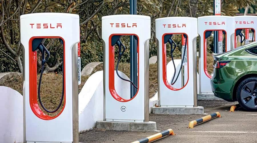 特斯拉现阶段广泛使用的V3充电桩,最大功率为250kW;最新推出的V4充电桩,最大功率达到350kW,充电15分钟预计可提供500km以上续航,首个太阳能V4超级充电站已在美国亚利桑那州落成。