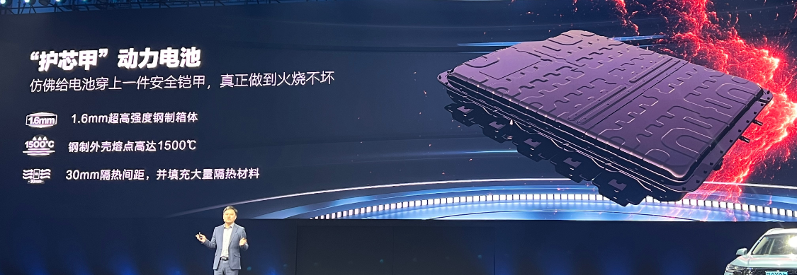 这铠甲还不薄,达到了1.6mm超高强度钢制箱体,钢制外壳熔点达到了1500摄氏度,是铝制外壳的三倍,而且钢制外壳延伸率更强,与此同时车辆在电池电芯与外壳底部保留了30mm隔热间距,构成车辆电池组安全框架,安全性大大提升。