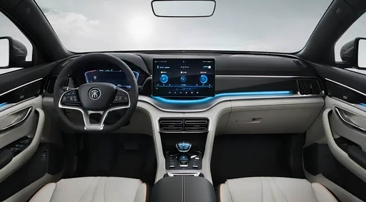 比亚迪宋Pro DM-i车内由8.8英寸液晶仪表和15.6英寸中控屏组成,并内置DiLink 4.0智能网联系统,可玩性和易用性都不成问题。其次,车内采用大面积搪塑软性材质加皮革材质包裹,无论是视觉效果还是实际体验都相当不错。