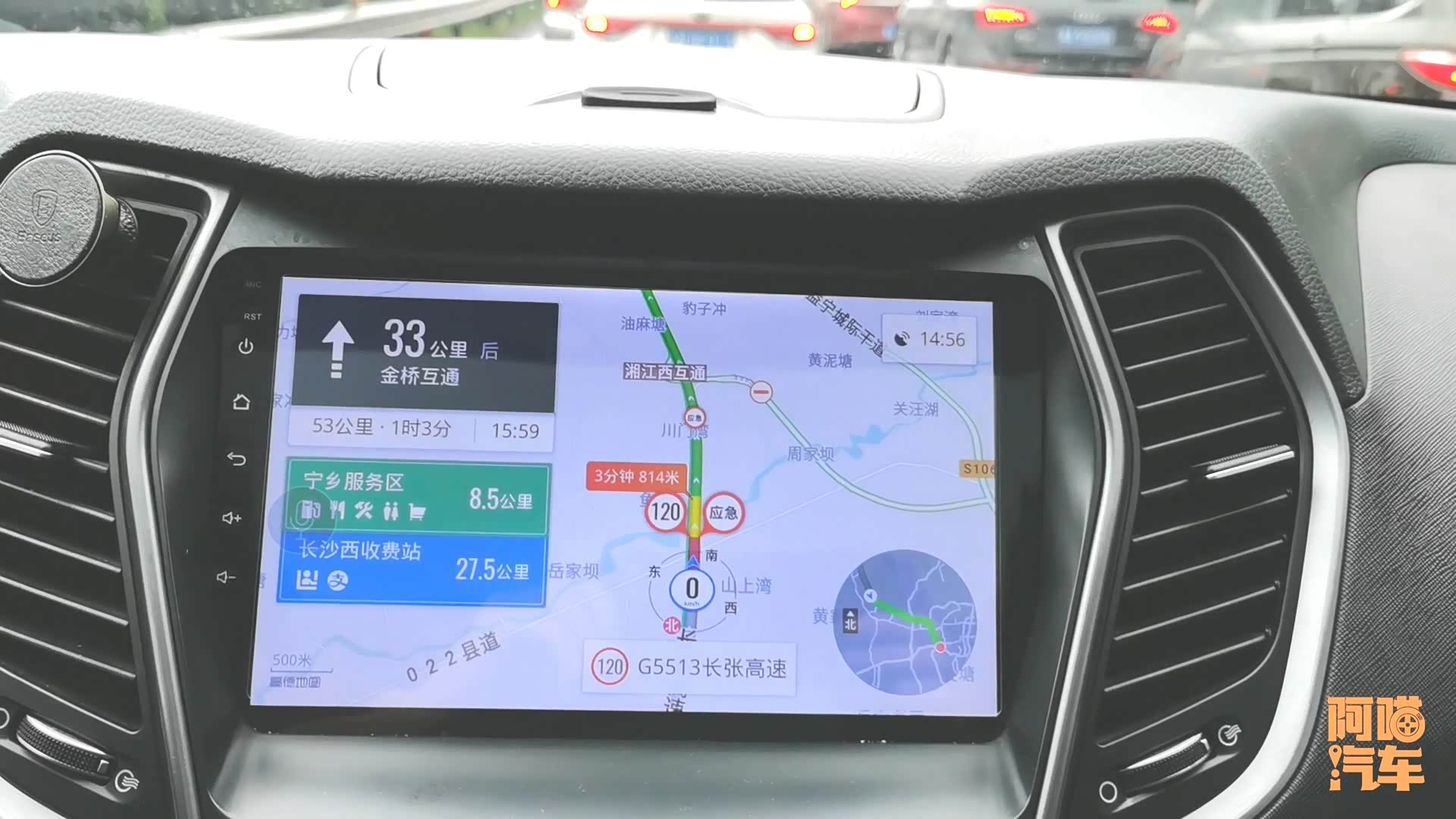 前方远远的出现堵车,大家不要看导航那个大地图,要看那个预览小地图。