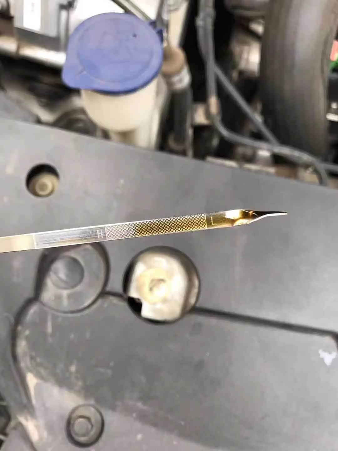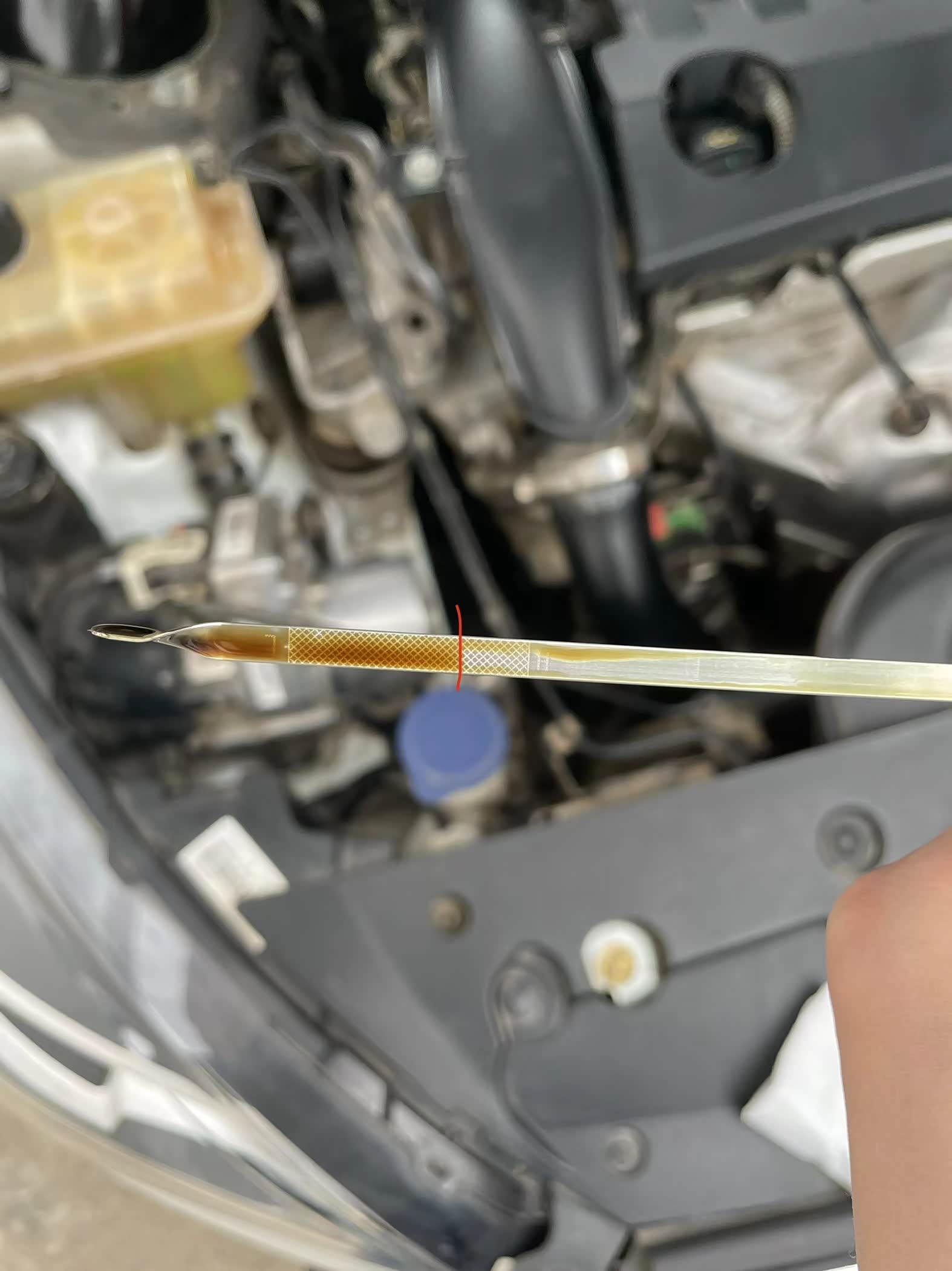 这一升补得有点多了,但是还在正常范围内,机油颜色还是正常的