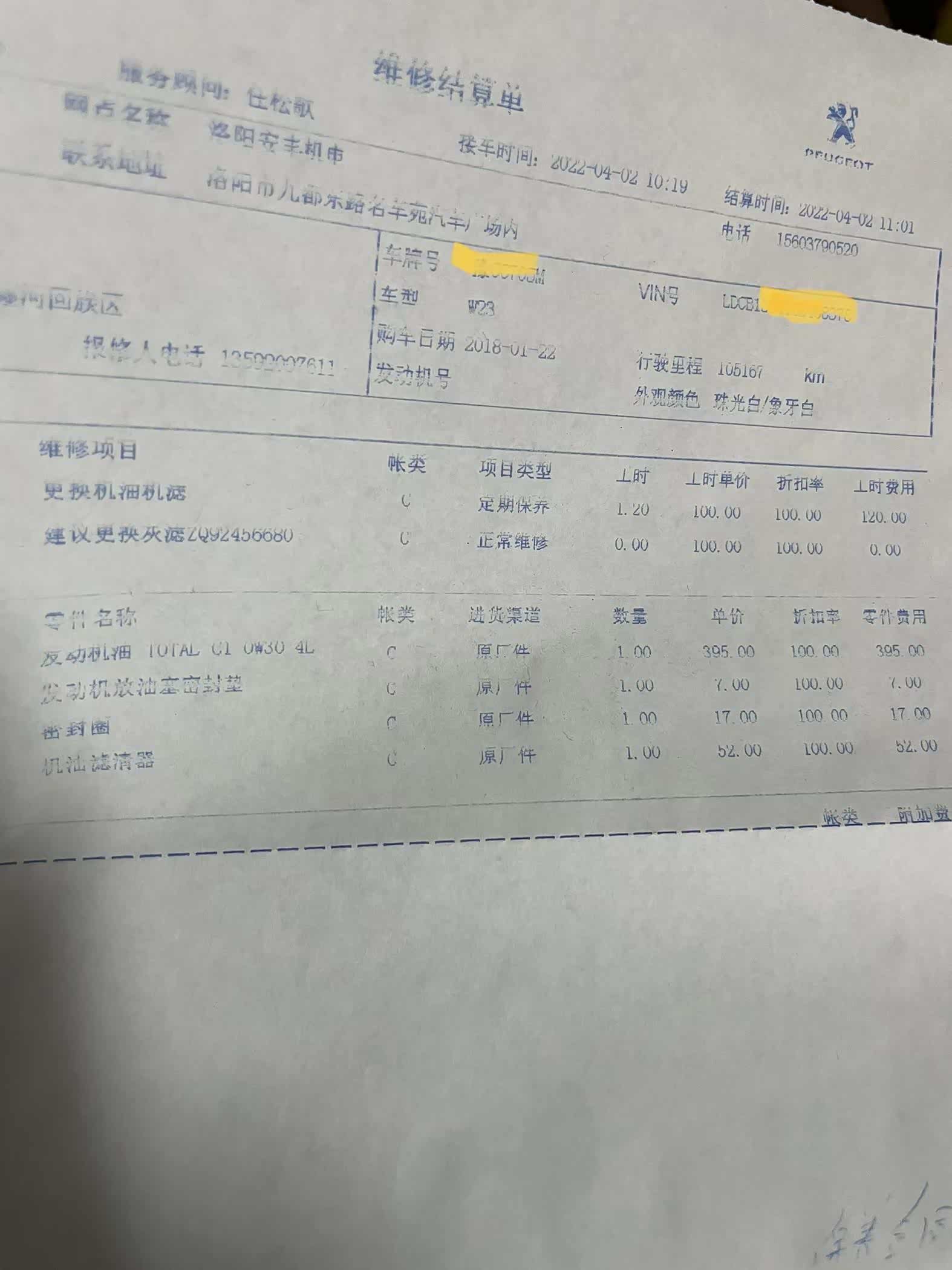此车15款508旗舰,18年1月购车上牌,目前4年半,里程108000公里,全程4s保养,严格按照保养手册的要求来进行,加的95号油,机油7500一换,一直用的0-30道达尔,空气滤芯一万一换,空调滤芯半年一换,火花塞3万一换,防冻液刹车油转向油等两年一换,变速箱油八万五一换。但即使我这样如此悉心维护着,最终还是烧机油。