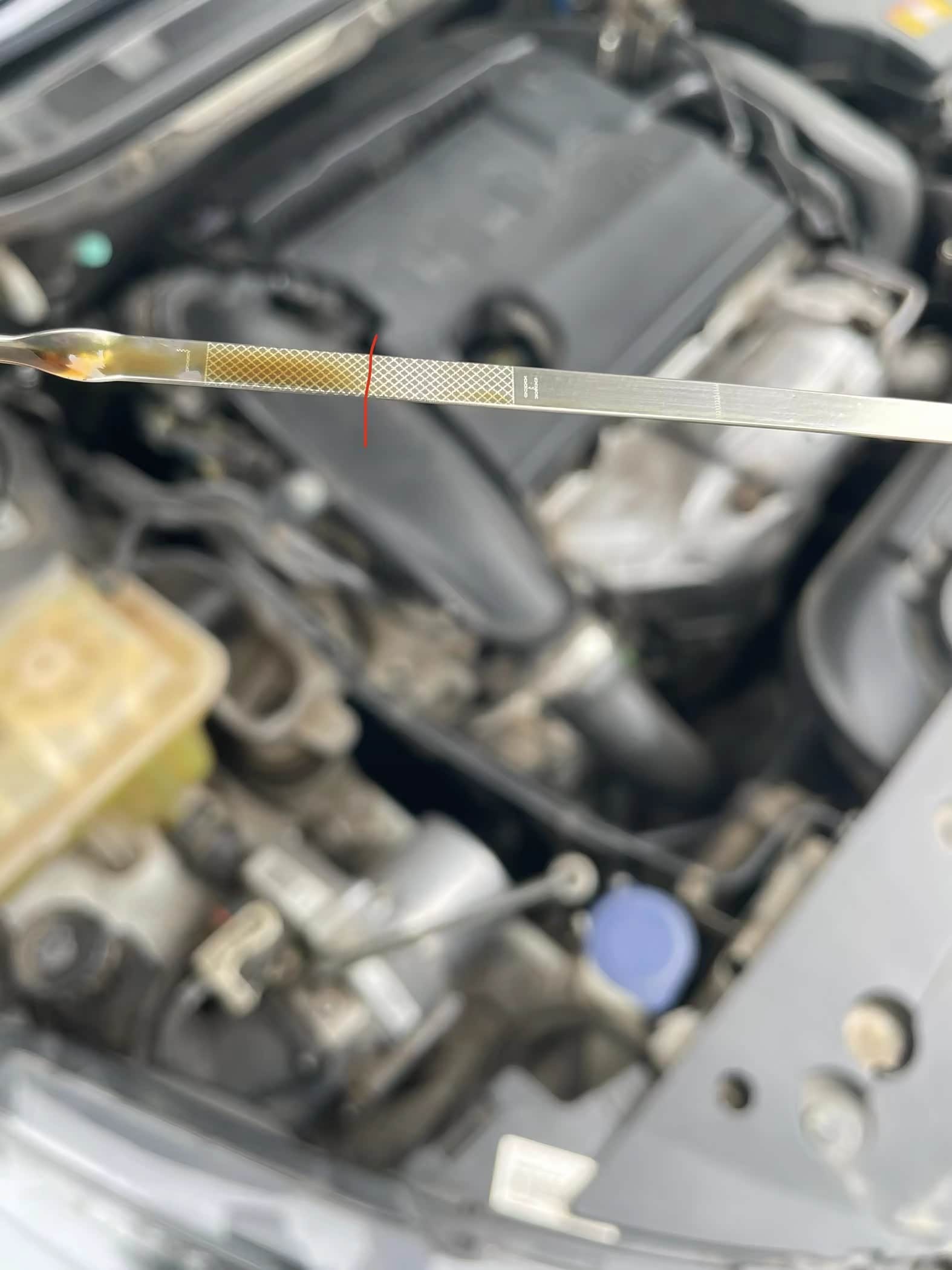 后来为此也跑过4s店检查,结果机舱无渗漏,零部件也没有问题,偶然有一次看下机油,不看不知道,一看吓一跳,刚10万出头,机油却已经到下线位置上面一点,大概一公分的样子。也就是说才跑了两千五就少1升油,比以前翻倍啊,当时心里那个烦啊,为了确认准确,我补了一升机油,跑到五千时再看,位置跟上次看到的几乎一样,这下基本可以实锤,跑五千少大概两升机油!
