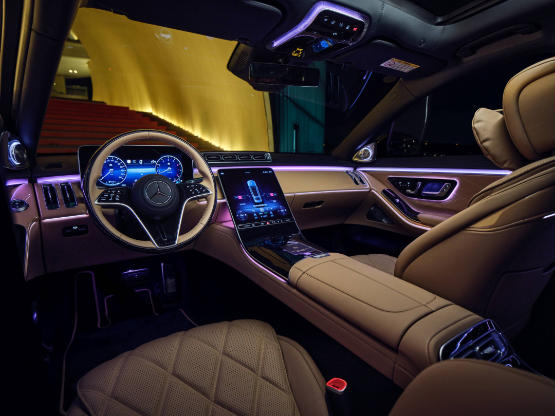 进入车内,我们可以看到,外观的沙色涂装延续到了内饰,依然在传达着自己的“自然”风格。而遍布车内的精美高光铝制饰件,又让人联想起迈巴赫高标准的精致与优雅。这叫啥?这不就是开头说的将“至臻豪华”引入自然么。