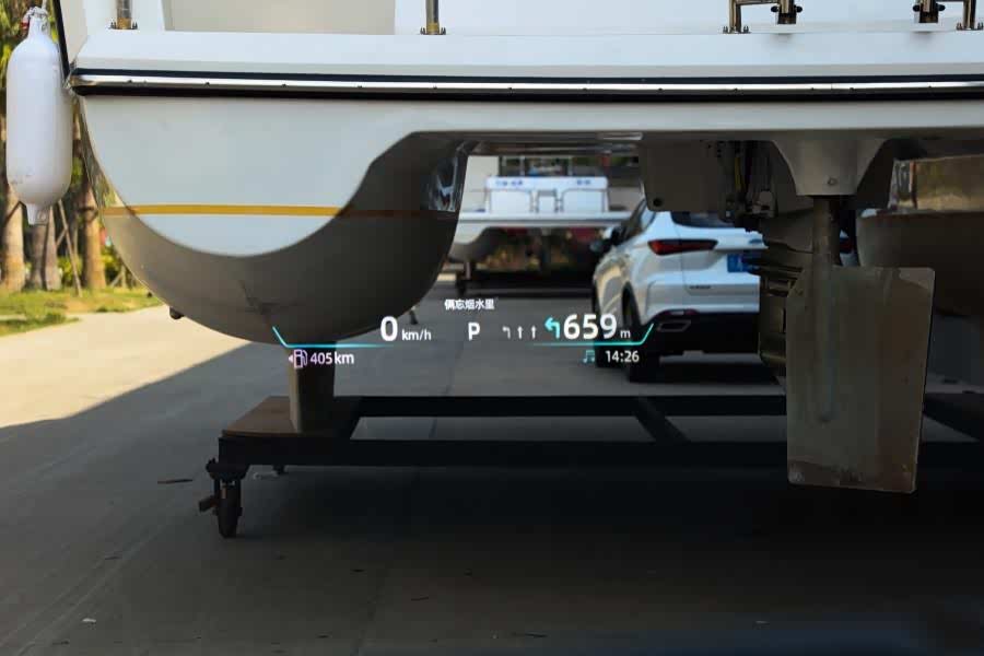 在我试驾的时候,还注意到,锐程PLUS配有AR-HUD增强现实抬头显示,可以把油量、时速、时间和导航地图等信息投屏到前挡风玻璃上,用实际路况来导航,更加直观,这个功能也很实用,看导航时,就不用偏头看中控屏幕了,在实用的同时,还提升了安全性。