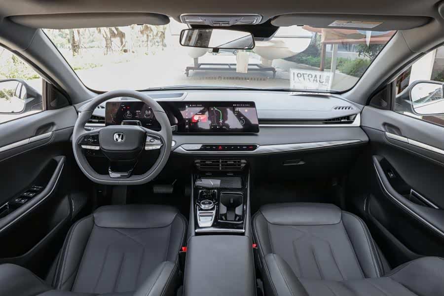 我不想买SUV,还是考虑轿车,长安汽车旗下的UNI-V、逸动PLUS和 锐程PLUS(参数|询价)都看过,也都试驾过,最后,选择了锐程PLUS,因为它的尺寸和空间是这三款车中最大的,而我就想买辆大空间轿车。当时我对比了这三款车的尺寸,发现锐程PLUS的长宽高是4800毫米、1825毫米和1480毫米,轴距是2770毫米,这样的尺寸已经可以和B级车媲美了,也让它的外观看上去更加大气,车内空间坐上去更加宽敞,我觉得这一点很能打动我。