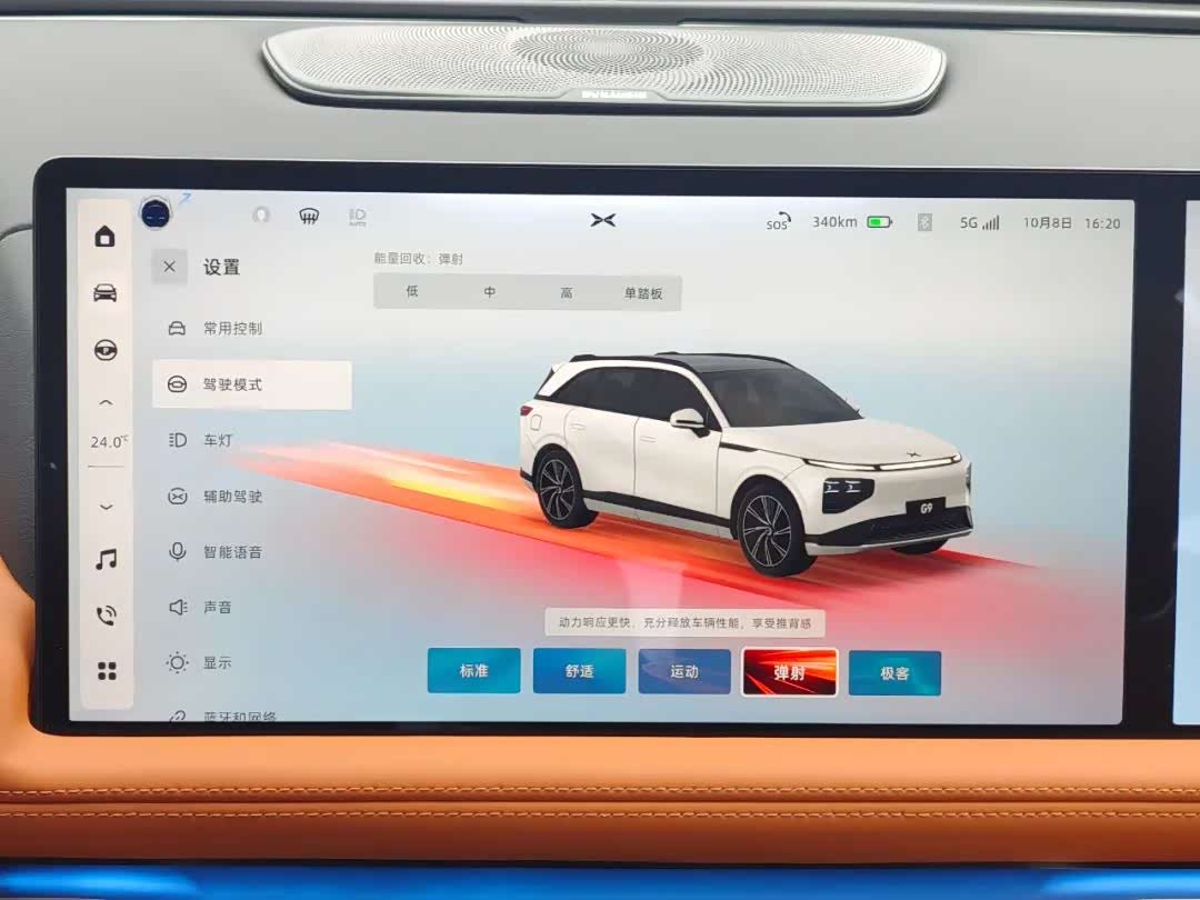 小鹏G9还有一个极客模式,就是把所有能调的选项都给你调,非常细分,用户的权限很大,动力响应、能量回收、ESP介入时机、四驱分配、转向助力、悬挂高度、悬挂刚度都能设置,就连“怠速”缓行的车速也可以调整,你总能找到适合自己的模式。