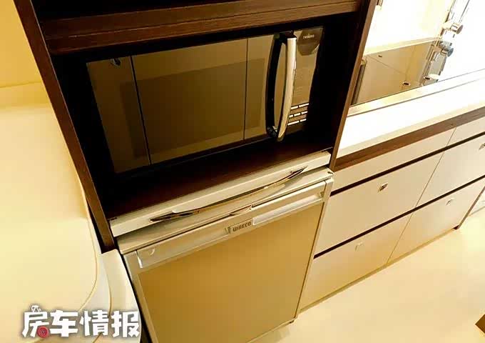 厨房操作台的尺寸还是比较不错的,台面上提供了翻盖的双孔燃气灶和不锈钢水槽,日常的基本烹饪需求还是能够满足的,而厨房区的上下方则配置了多个储物空间,整体上也提升了全车的储物能力。