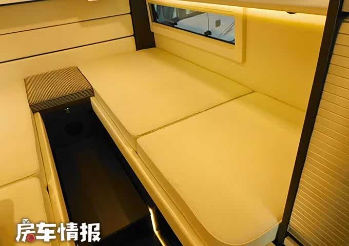 进入车厢内部,其实整体的布局和设计还是属于比较主流的日本房车设计的,只不过在空间上相较其他小型的床车会略胜一筹。