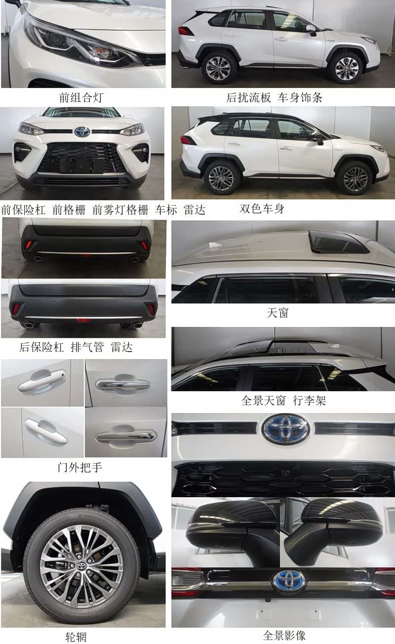 结合申报图来看,新款丰田威兰达的外观设计与现款相比并没有明显的变化,前脸采用分体式格栅设计,其中长辐条式上格栅与左右两侧的大灯相连接,使得车头的视觉宽度得到延展,而尺寸较大的下格栅则使用黑色蜂窝网状结构填充,展现出个性运动的气息。