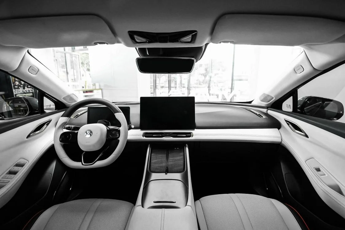 内饰方面,合创A06内饰采用了极简的设计风格,新车配备了时下流行的悬浮式中控屏,在内饰中几乎看不到任何物理按键,关于车内的操作都集中在中控屏之上,这也是目前新能源车型惯用的设计手法。不过反应速度还是要看它的软件和硬件配置,据资料显示合创A06车机内置合创自研的HI-OS车机系统,支持语音识别系统、车联网、手势控制等,让人机交互更自然;在硬件上采用了8155芯片,这种芯片算是目前车规级中最高的一种,可以让车机运行更加流畅,实现3秒开机,为消费者提供更智能的出行体验。
