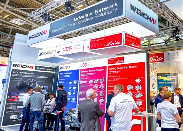 此次展会,潍柴携旗下林德液压、德国欧德思公司、奥地利威迪斯公司等一同亮相。德国欧德思是大功率变频和电源设备领域的技术领导者,奥地利威迪斯则是业内知名的车辆驱动系统开发技术公司。现场,潍柴WISE系列自主ECU“吸睛无数”,还展示了纯电驱装载机全套系统,包括行走系统和工作系统。林德液压为其提供工作系统主阀,同时高度集成电机和变速箱,成功为客户提供一体化解决方案。