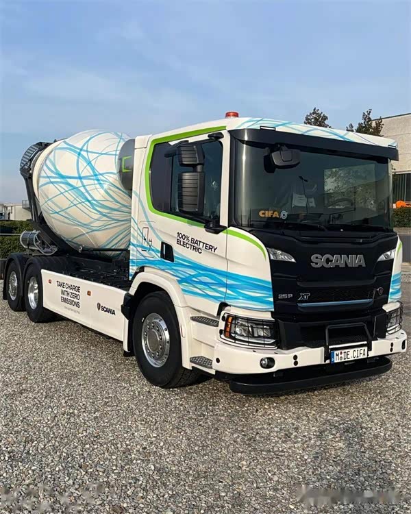 斯堪尼亚带来的是一款电动搅拌车,车辆基于斯堪尼亚25P纯电动卡车底盘打造,最大可容纳7立方米的混凝土。