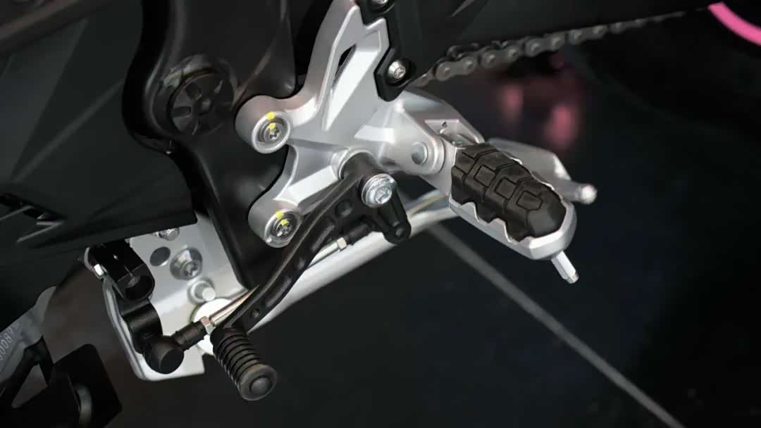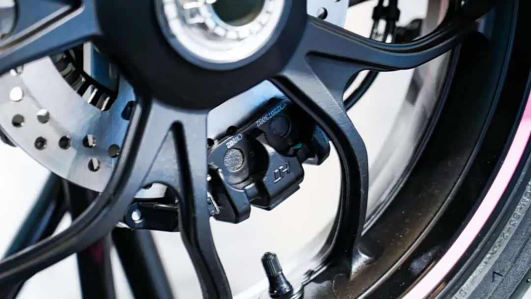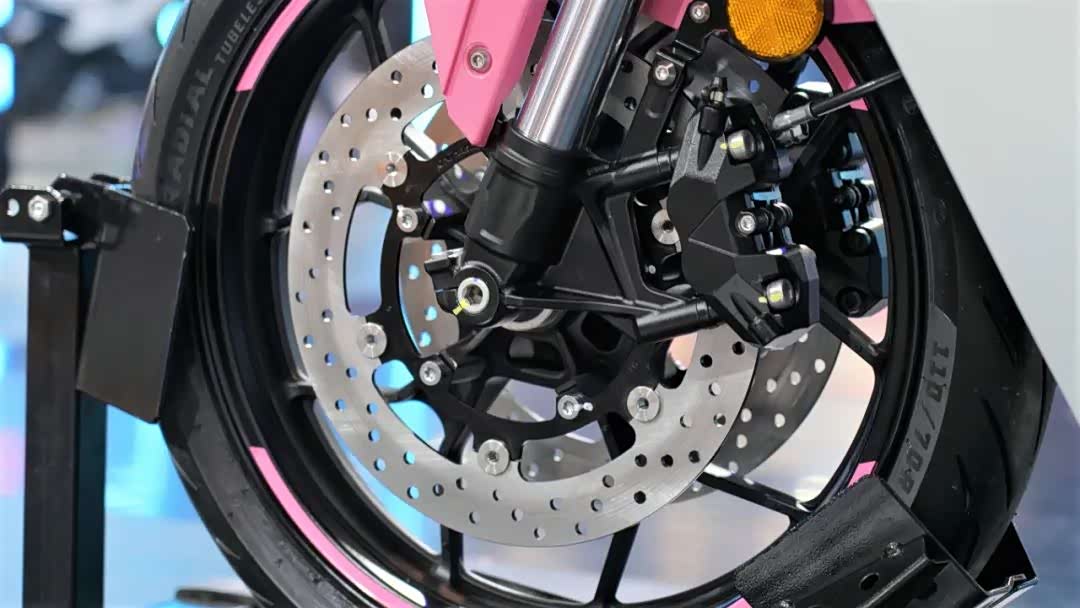 前双碟搭配径向四活塞刹车卡钳,这个规格能让很多竞争对手感到羞愧,即便卡钳不是进口品牌,但是这个标准即使是在500cc级别的车型上,也不见得会有。