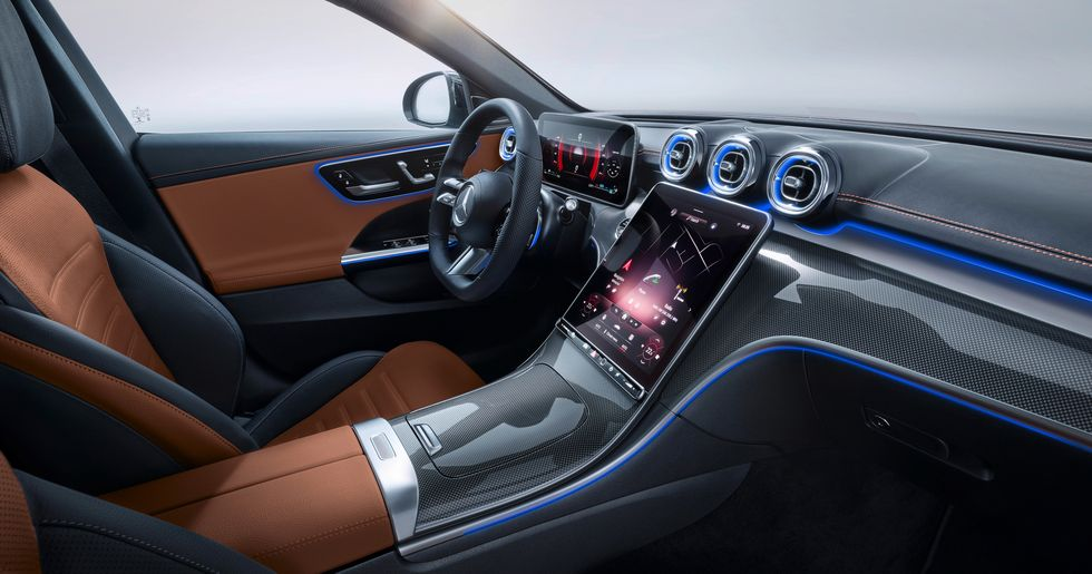 内饰方面,2022款美规奔驰C300同外一样,有一股浓郁的“S级”味。驾驶室内配备了12.3英寸横置全液晶仪表+11.9英寸纵置中控屏的组合,支持苹果CarPlay手机互联、百度CarLife手机互联、导航、语音助手等功能。值得一提的是,中控屏内搭载的是奔驰第二代MBUX人机智能交互系统,操作便捷丝滑,把驾驶模式、摄像头视野、车辆设置、警示灯和音量等功能集成到一块屏幕之中,实体按键、旋钮进一步被缩减。新车安装有先进的指纹扫描功能,用户可以通过扫描指纹激活更多个性化驾驶设置,体验更人性化。
