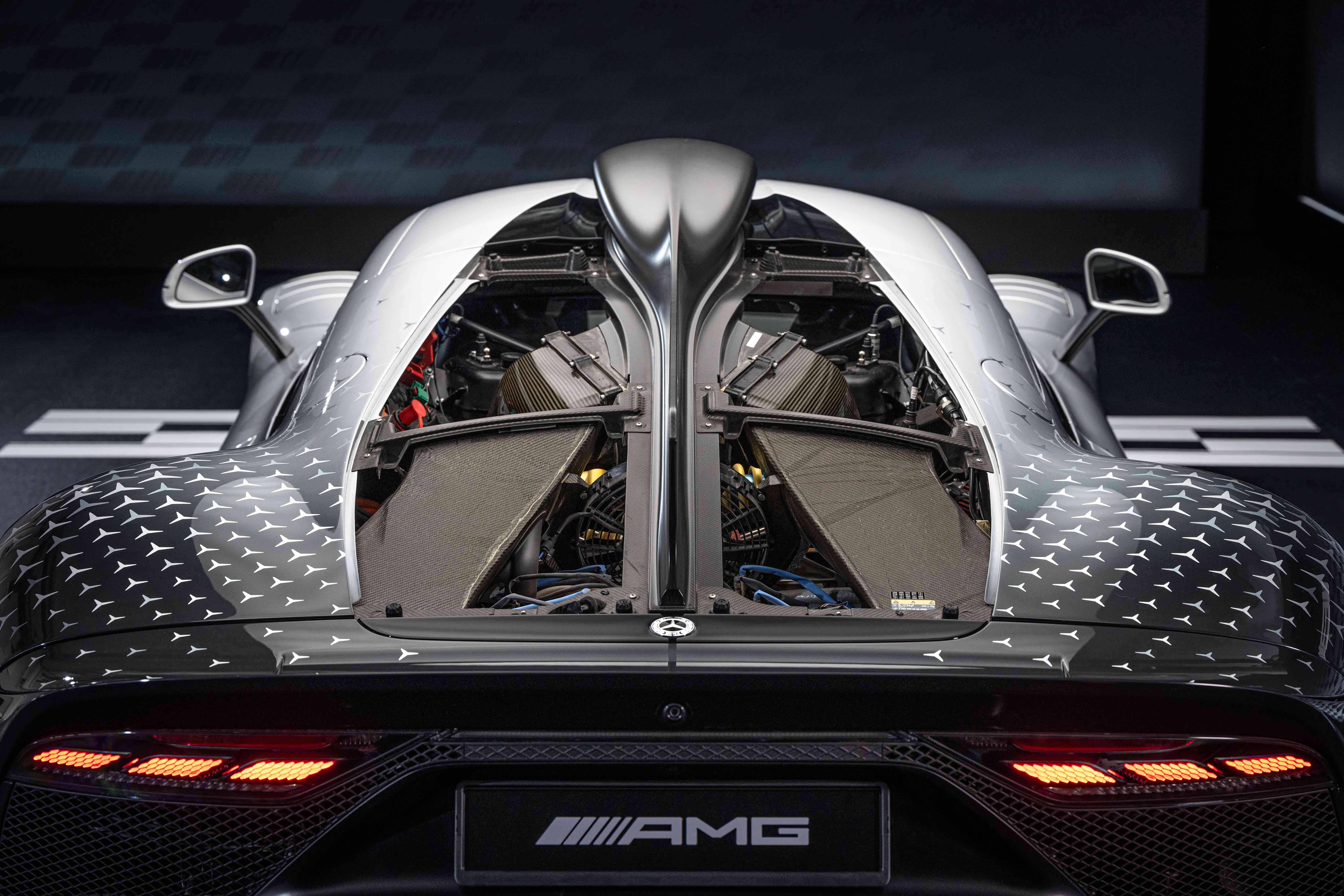 此次破纪录的车型拥有梅赛德斯-AMG ONE量产车型上的所有标准配置。作为首款将F1赛道混合动力技术带至公路的量产超级跑车,其E PERFORMANCE混合动力系统由一部内燃机和四部电机组成,可提供高达782千瓦的澎湃动力,最高车速达352公里/小时。