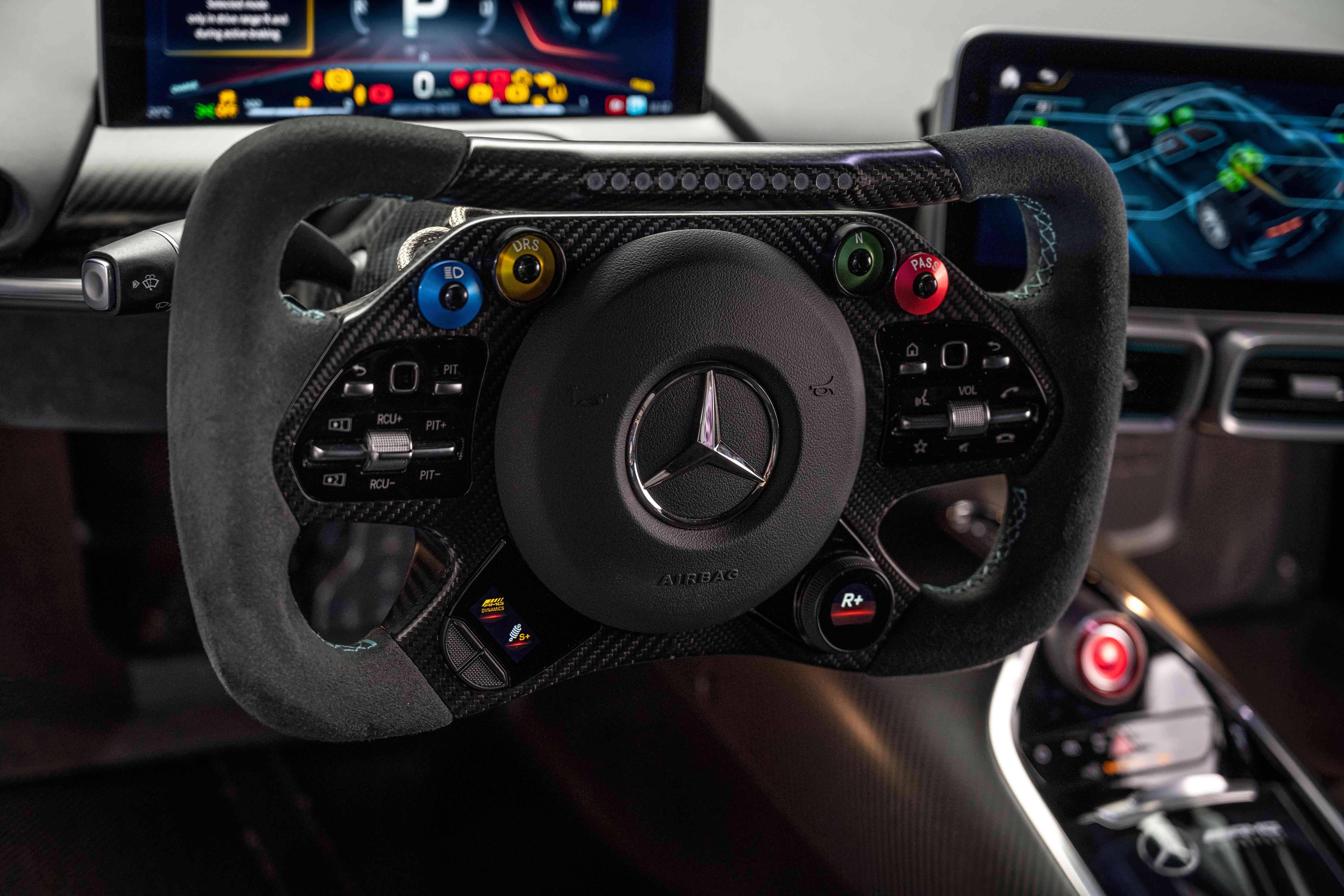 AMG ONE应用的赛车技术还包括碳纤维单体壳车身设计、可承力的发动机/变速箱单元和主动式空气动力学部件、推杆式悬挂等。凭借丰富的技术加持,这款双座的AMG ONE在某些情况下甚至比F1赛车更有优势。它还配备完全可变的AMG高性能4MATIC+全时四轮驱动系统,包括带混合动力驱动系统的后轴和带扭矩矢量的电力驱动前轴。