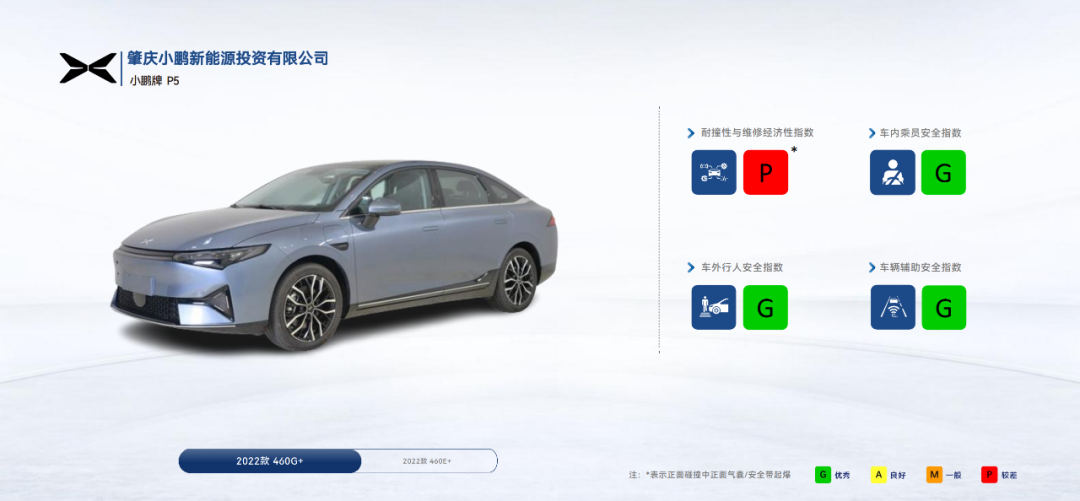 另外,值得注意的是,45.98万起售的理想L9在耐撞性与维修经济性指数上拿到了M级评分,而起售价为17.79万的小鹏P5却拿到了最差的P级评分,还在低速(15km/h)碰撞中出现了气囊起爆的情况,既可能对成员造成伤害,也徒增更换气囊的费用。