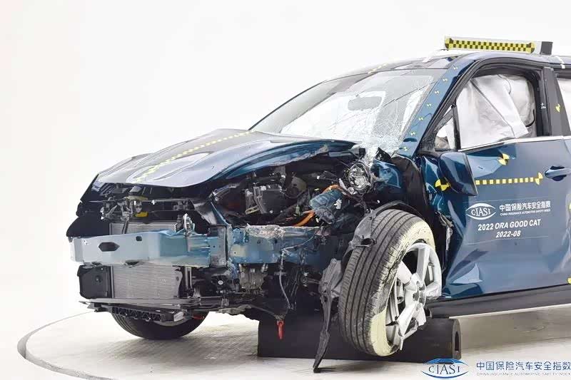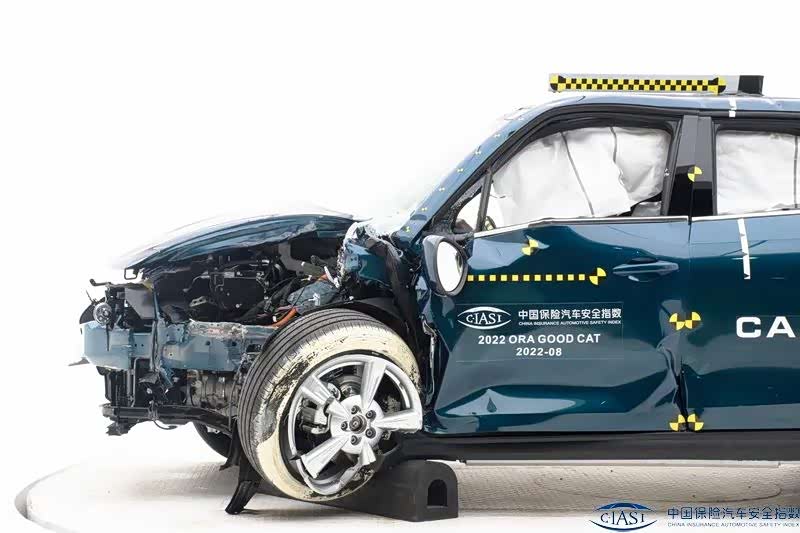此前我们表达过一种看法:像欧拉好猫这种轮胎尽量接近车头/车尾的小型电车,在正面碰撞中,很可能留给轮胎的缓冲空间不够,使轮胎受到更大的撞击力,最终侵入乘员舱,对前排乘客的腿部造成伤害。