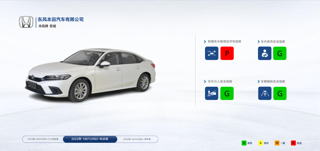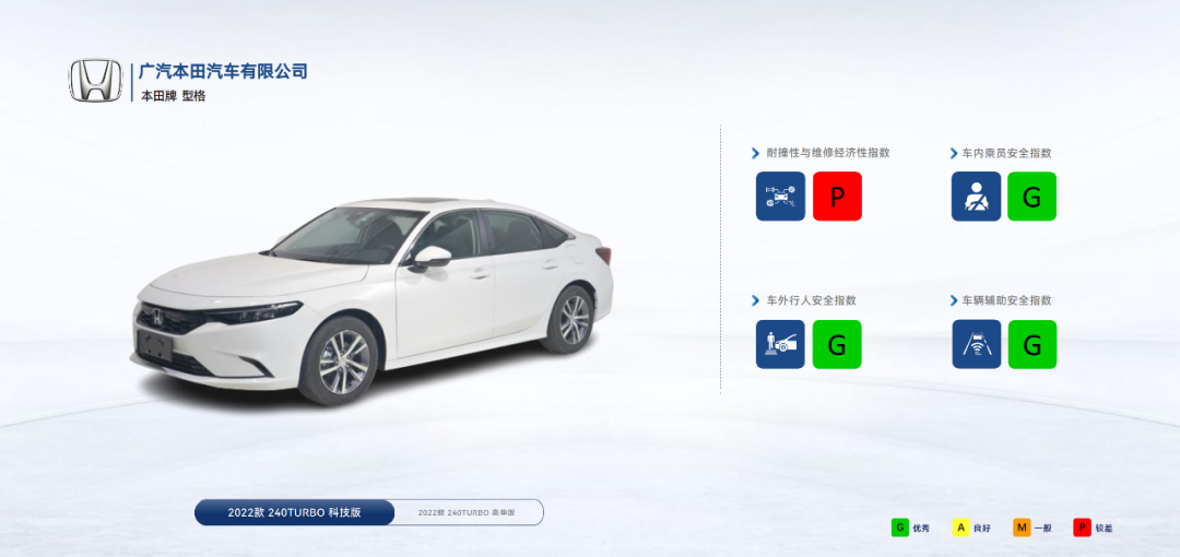 到了十一代思域,以及其姊妹车型广汽本田型格上,正面25%偏置碰撞、侧面碰撞均得到了G级评分。不过值得注意的是,型格正面25%偏置碰撞中,假人的腿部和脚部伤害评分为A级,而思域为G级,这或许能成选择思域的一个理由。