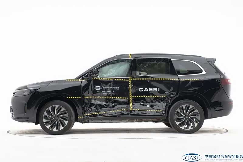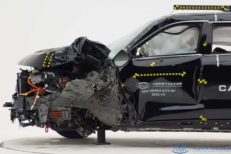 虽然问界M7的驾驶员侧正面25%偏置碰撞评分为G级,但在碰撞中A柱发生了弯折,乘员舱上部入侵量只获得了A级评分。