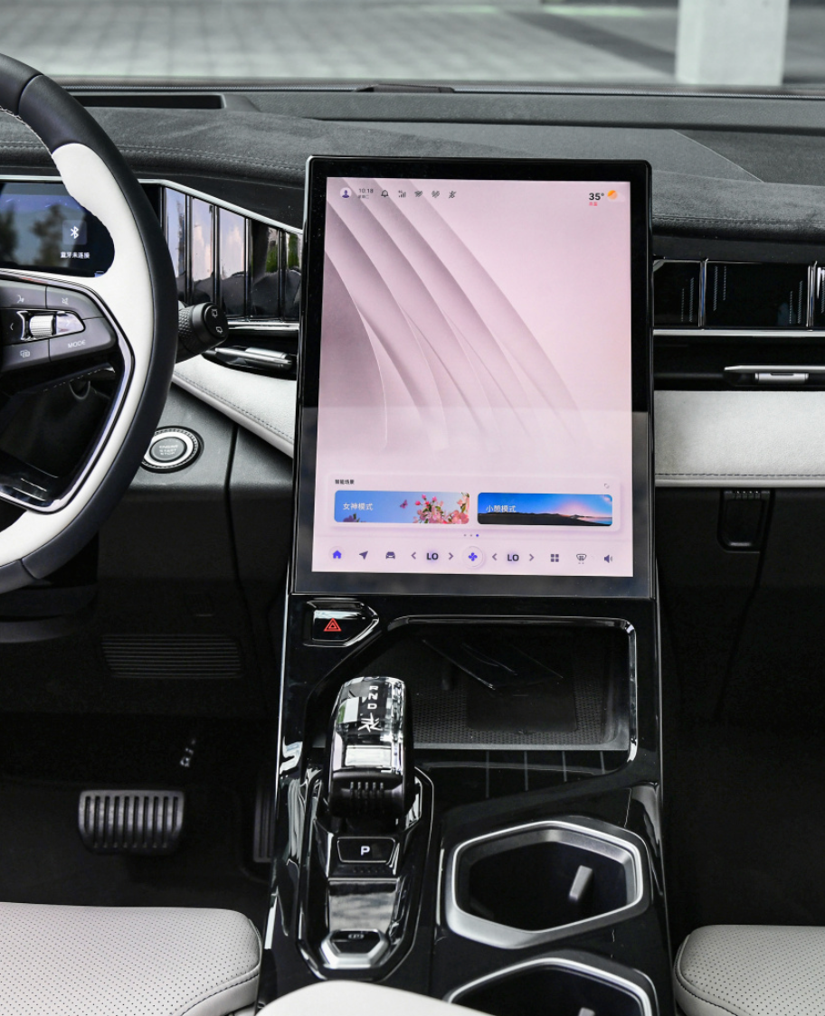 配置方面的表现也和它的用料一样,吉利是使劲“堆砌”,13.2英寸的中控竖屏、在中控台下方还放置了一个环绕式情感光幕、高通8155旗舰芯片外加AR-HUD的抬头显示,还有之前已经在网上火过一阵的光影墨镜遮阳板,可以说你在其他车上看过的或者没看到的,你都能在博越L上面找到。
