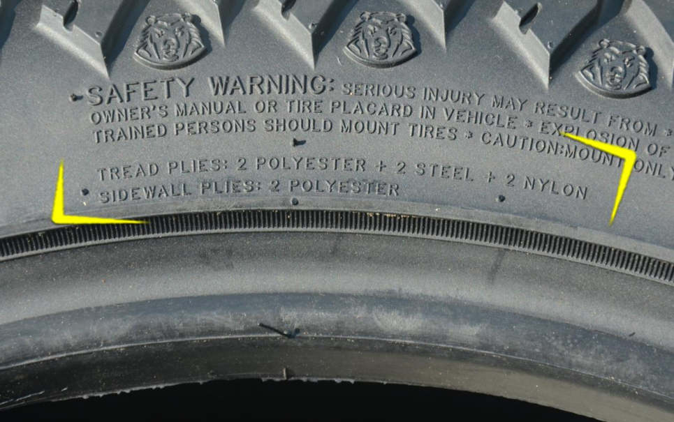 除了硬外黑熊轻AT用料也非常足。胎冠采用2层聚酯纤维、2层钢丝、2层尼龙打造,而胎侧采用2层聚酯纤维,层级数相当于10PR,也就是10层帘布层的强度等级。