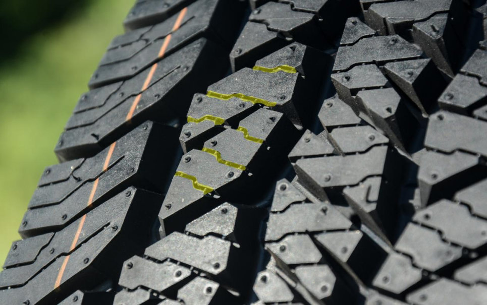 当然这种花纹块错位设计,四条主沟槽设计带有一定的角度错位,不仅能够满足快速排水的能力,同时也能够让轮胎上的泥块快速甩开,提升越野路面或冰雪路面的抓地力。