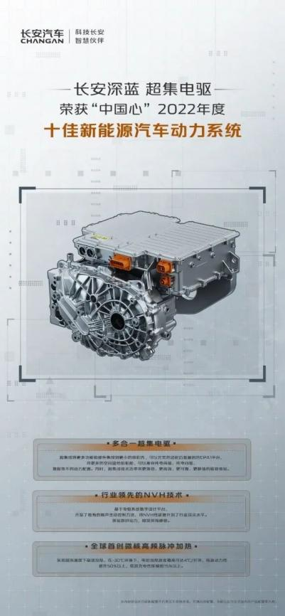 本次,长安深蓝超集电驱也获评了“中国心”2022年度十佳新能源汽车动力系统。作为长安深蓝首款战略车型,长安深蓝SL03包含纯电、增程、氢电三个版本,并且发布33分钟即订单破万,累计大订已超4万辆。