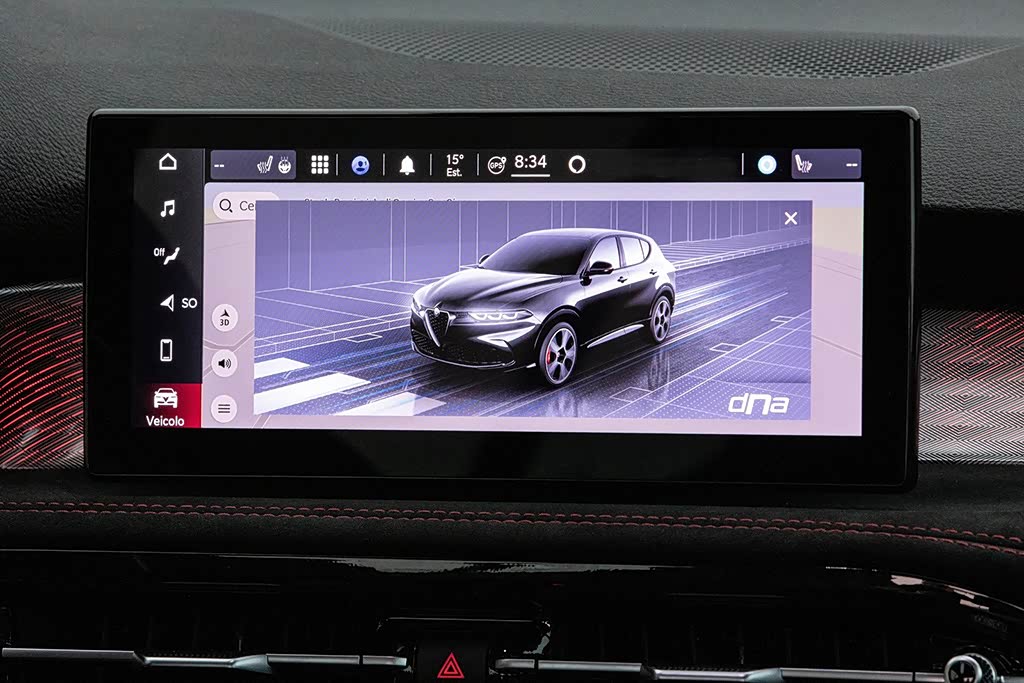 Tonale插电式混动Q4车型的内部空间同样延续了普通版车型的车内设计,依旧是阿尔法·罗密欧家族那充满运动氛围的环境。另外,为了让驾驶员随时了解车辆插电混合动力系统的状态,在12.3英寸多功能仪表屏幕和10.25英寸中控台悬浮触摸屏上都增加了新的显示内容。