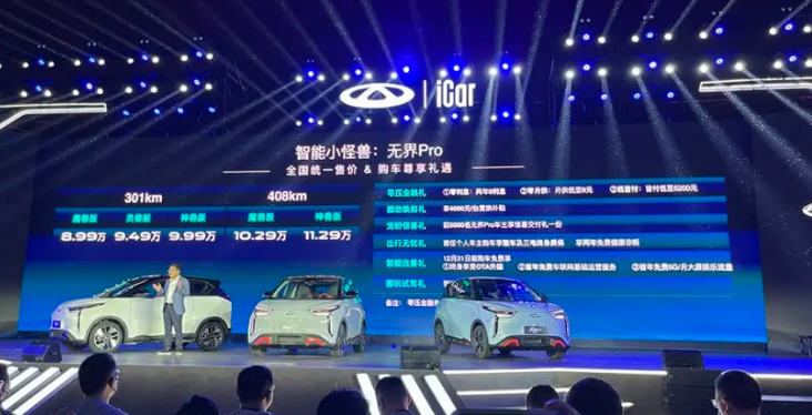 目前奇瑞在3门4座的入门级新能源小车市场里,已经布局了QQ冰淇淋和小蚂蚁两款车型,价格也涵盖了3.99-9.40万元的区间,小蚂蚁以及QQ冰淇淋自正式上市以来,就凭借实惠的价格,极高的性价比同样赢得了不错的产品口碑。这不,奇瑞又推出了一款全新的车型,11月23日,奇瑞新能源旗下全新微型电动车无界Pro正式上市,该车共推出五款配置车型,售价区间为8.99-11.29万元。