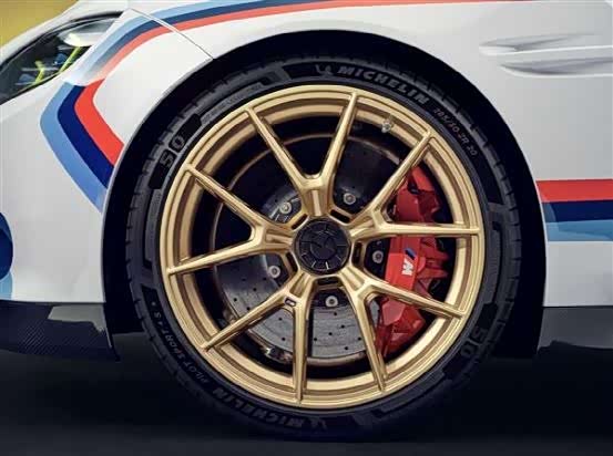 而新车除了手工工序要比普通的M车型高出数倍时间外,甚至在喷漆工序上,该车全身的阿尔卑斯山雪山白涂装,搭配 BMW M 三色拉花,这种特殊的喷漆工艺在生产过程中需要额外增加 6,700 个工时,134 道喷漆工序。并且,车辆采用的轮胎也都是定制的米其林轮胎,胎壁上印有「50」的浮雕字样。