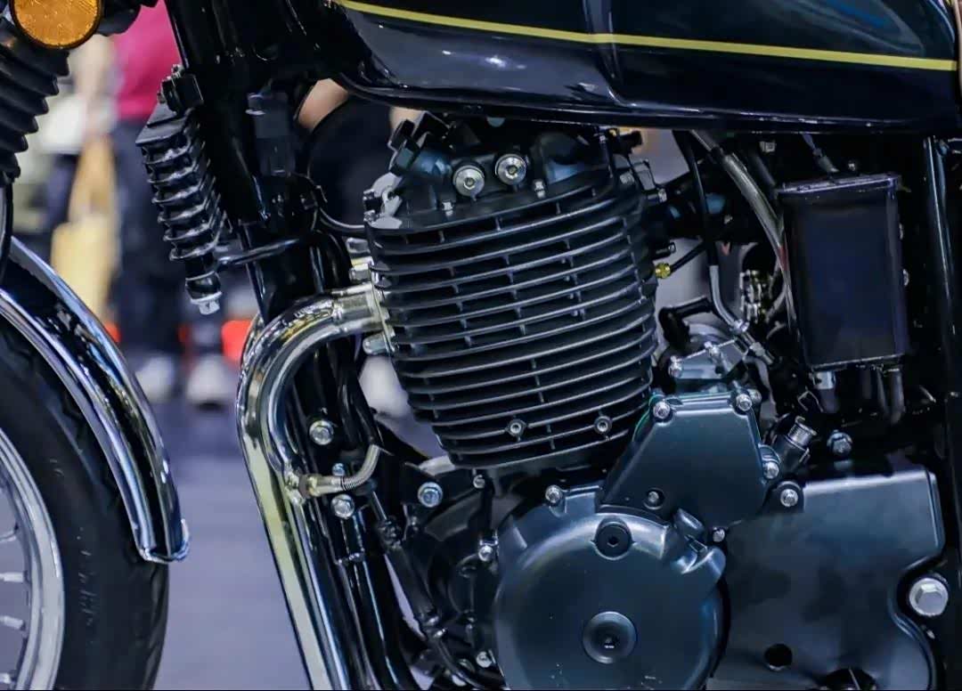 2.动力方面,虽然大单缸不见得就是复古车的标配,但是它硕大的散热片,强调低扭的特性,会对整车的观感和性能有很好的衬托作用,所以这款车采用的单缸发动机也是一个亮点。