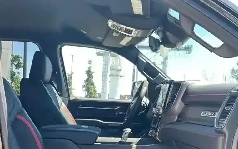 外观方面,整体外观造型看上去非常的凶悍,采用了道奇RAM家族式的设计风格,并且配备了很多的套件。前脸采用了类似于游戏手柄式的中网格栅设计,内部采用蜂窝状的设计进行填充,并且进行了黑化处理,下方为大尺寸的前保险杠,并且配备了银色的下护板,搭配两侧凶悍的大灯,以及引擎盖上凸起的线条和硕大的进气口,具有极强的侵略性。