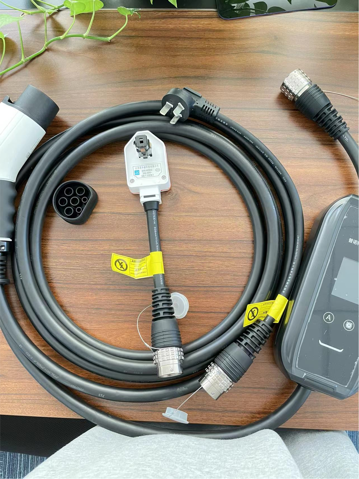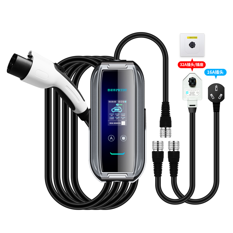 下面我来以普诺得16A3.5KW和32A7KW两用这款充电器做一下介绍。这款充电器配有16A和32A两种接头。
