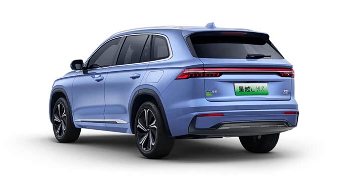 从侧面车身来看,星越L Hi·P的线条勾勒也十分丰富,镀铬的勾边也增添了设计上的精致感。可以说新车并没有因为清爽色系的运用以及新能源的设定而在结构层面显得单薄,反而是凸显出SUV夯实厚重特点。整体的车身比例也十分的协调,新车左侧后轮拱处加入了充电接口。
