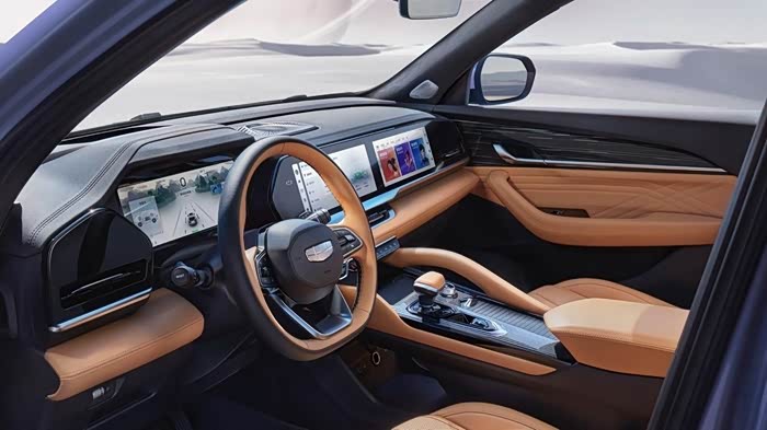 内饰方面,星越L Hi·P依旧采用贯穿式的IMAX三联屏设计,环抱式中控台配合上十分考究的Nappa真皮座椅+翻毛皮顶棚工艺用料,档次感尽显。新车还搭载了吉利全新数字智能座舱系统,不只是智能语音操控,还支持多项智能场景,能给用户带来更全面、更具有科技感的出行体验。而副驾娱乐屏的影院模式,也能给用户带来更好的观影体验。